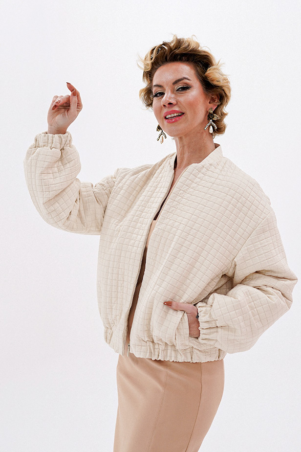 Akrilik ve pamuk karışımlı kumaş kullanılarak üretilen bu krem rengi bomber ceket, hem şıklık hem de konfor sunuyor. Hafif yapısı sayesinde günlük kullanım için ideal olan bu model, modern ve rahat kesimiyle her kombinle uyum sağlar.